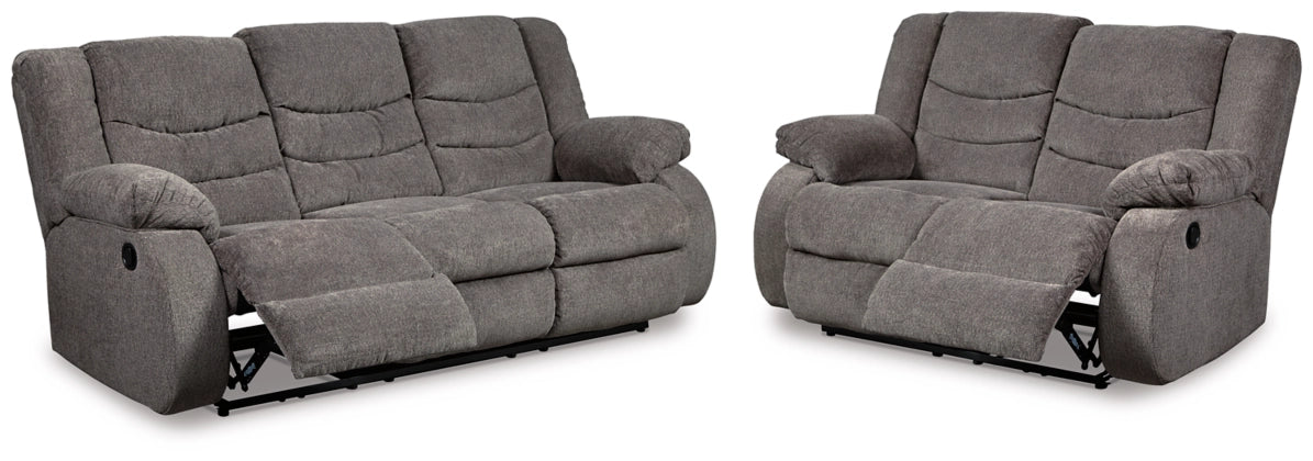 This reclining sofa and loveseat package puts the win in winning. The waterfall back design and doubly plump pillow top arms team up with soft chenille fabric to go for the goal. Ample seating room makes the comfort possibilities endless. Sit back and relax. You won’t go wrong with this reclining seating set.